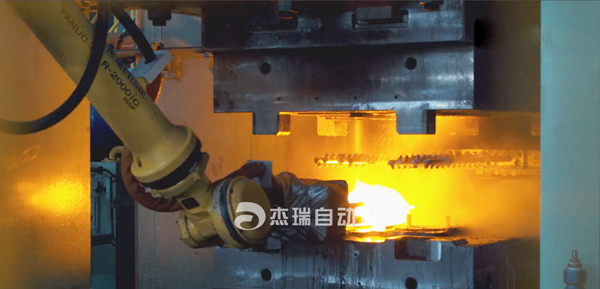 The forging robot can meet the automatic production requirements of metal forging, automatic feeding and unloading, spraying, releasing agent, trimming and deburring.