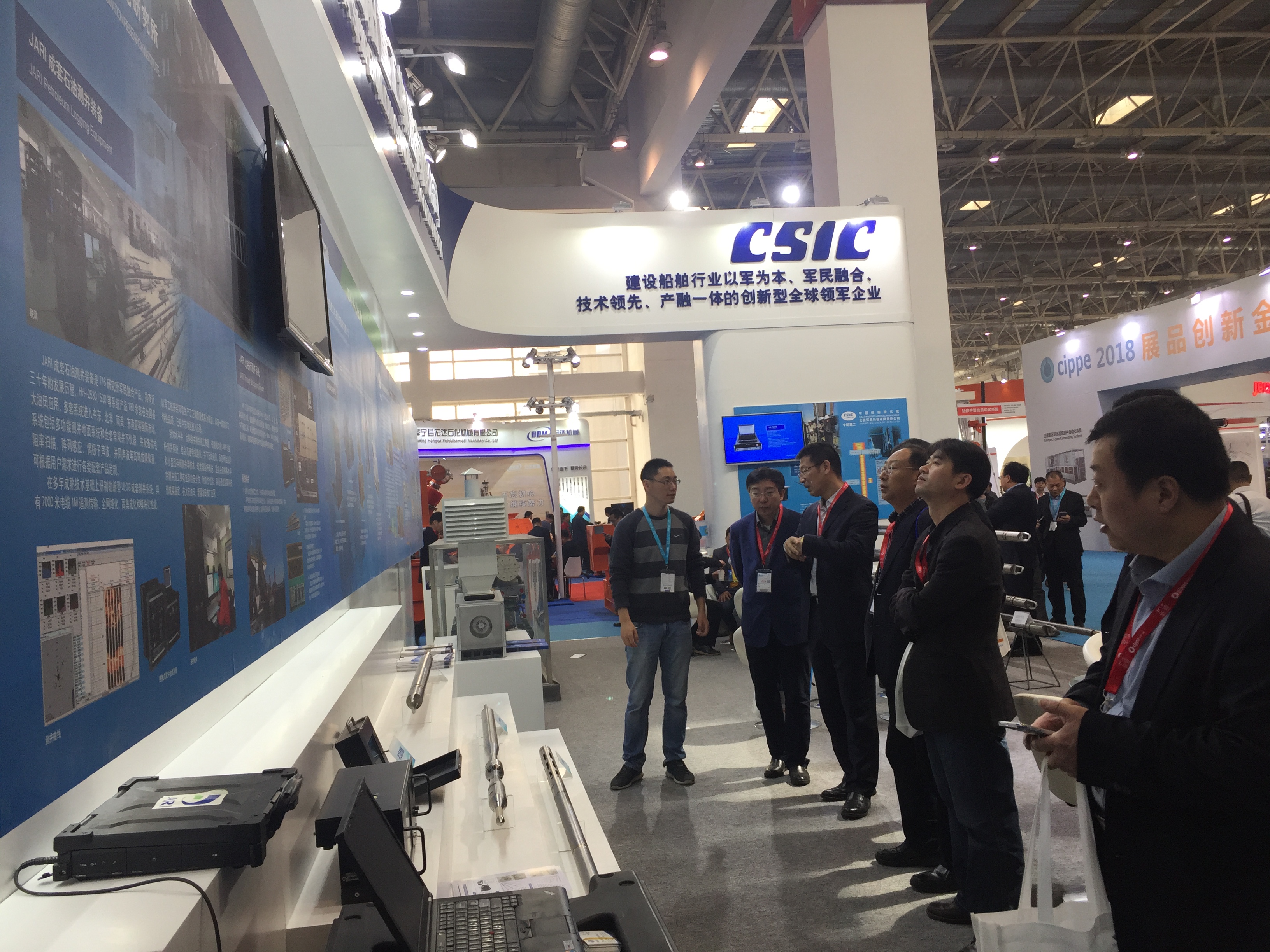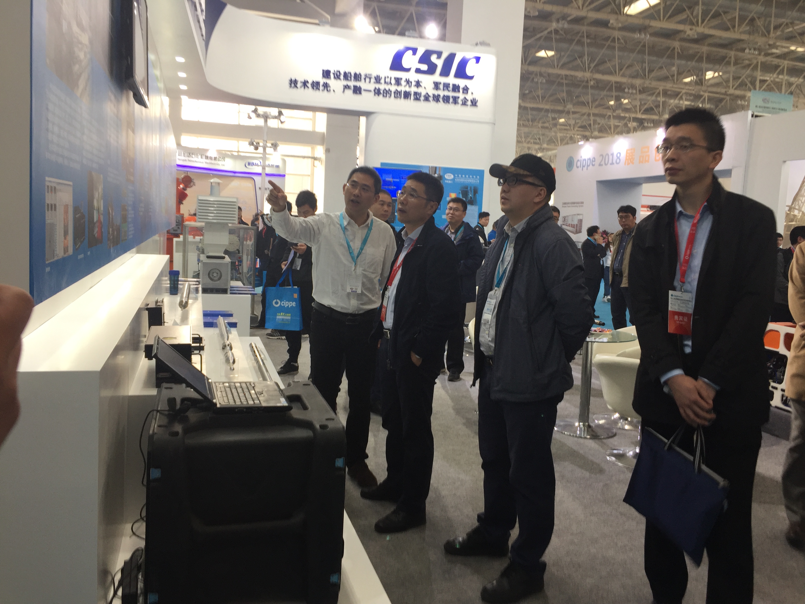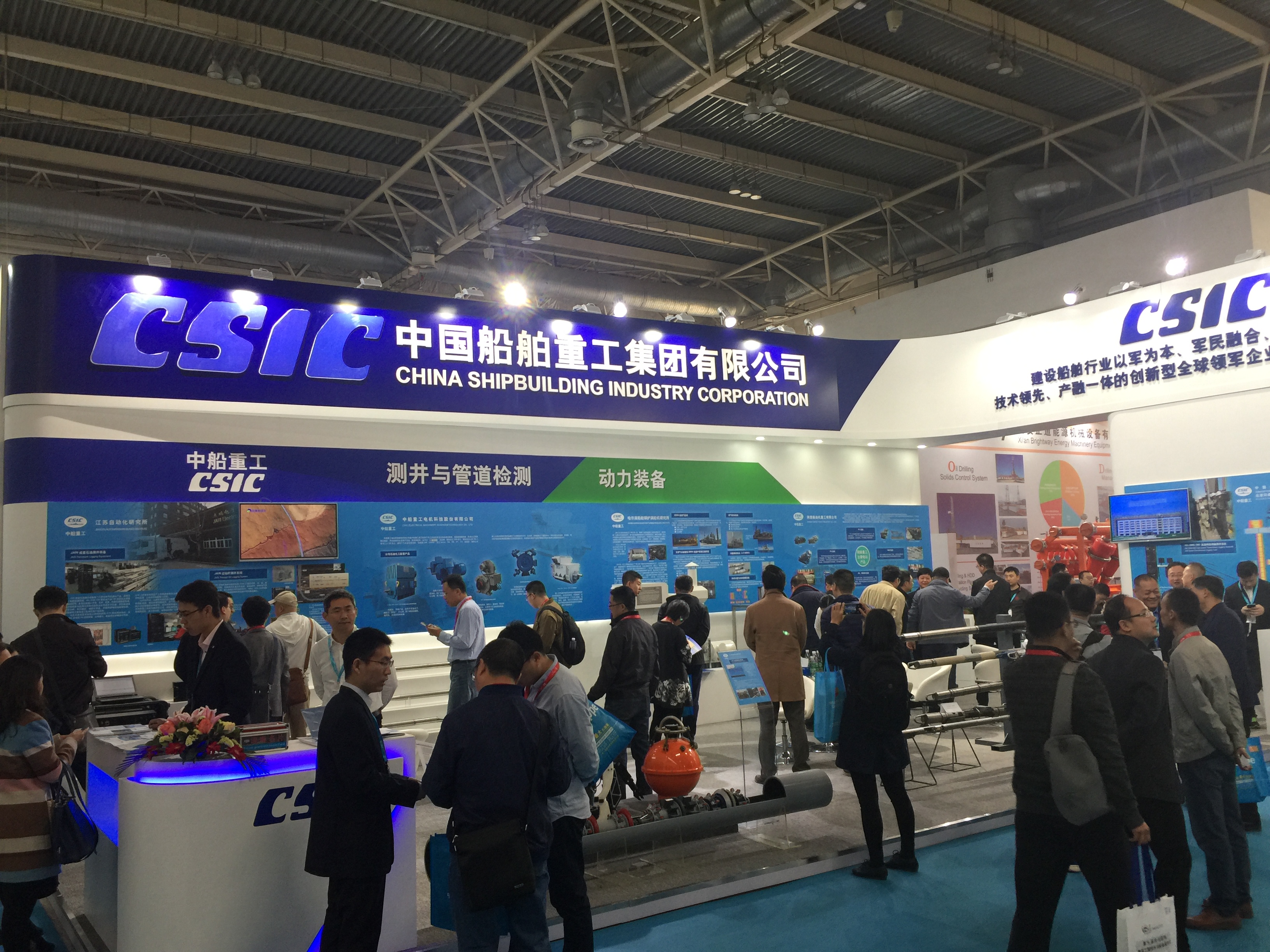 展會伊始,中國船舶重工集團公司產(chǎn)業(yè)部吳興旺主任蒞臨展位,對公司新型測井裝備的高可靠性及海底管道檢測的高通過性、高清晰度等給出了高度評價,公司能源海工裝備發(fā)展備受鼓舞。