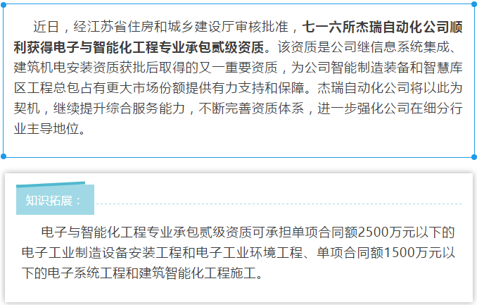 ?七一六所杰瑞自動化斬獲一項(xiàng)省級資質(zhì)